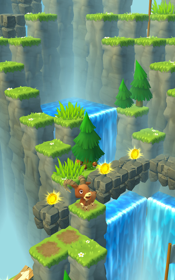 Mountain Goat Mountain je prelijepo dizajnirana besplatna Android igra od poznatih autora Zynga. Cilj je pomoći kozi da se popne što višlje na planinu bez da upadne u provaliju ili vodu ili ju pokupi kotrljajući kamen ili deblo ili ju udari grom… 🙂 Igra je očita kopija hita Crossy Road – po kockastom dizajnu, kupovini likova, načinu upravljanja, ali kako je igra jako zabavna nek ih, nek kopiraju 🙂